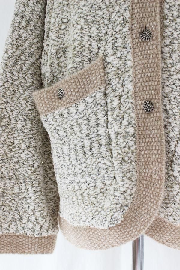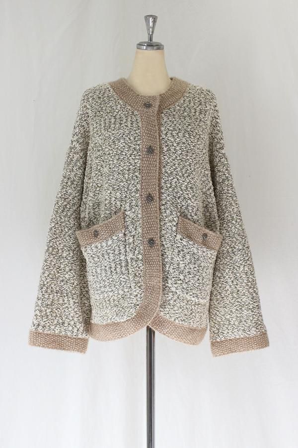 4種類の糸を贅沢に組み合わせた、表情豊かなツイードニットカーディガン。
