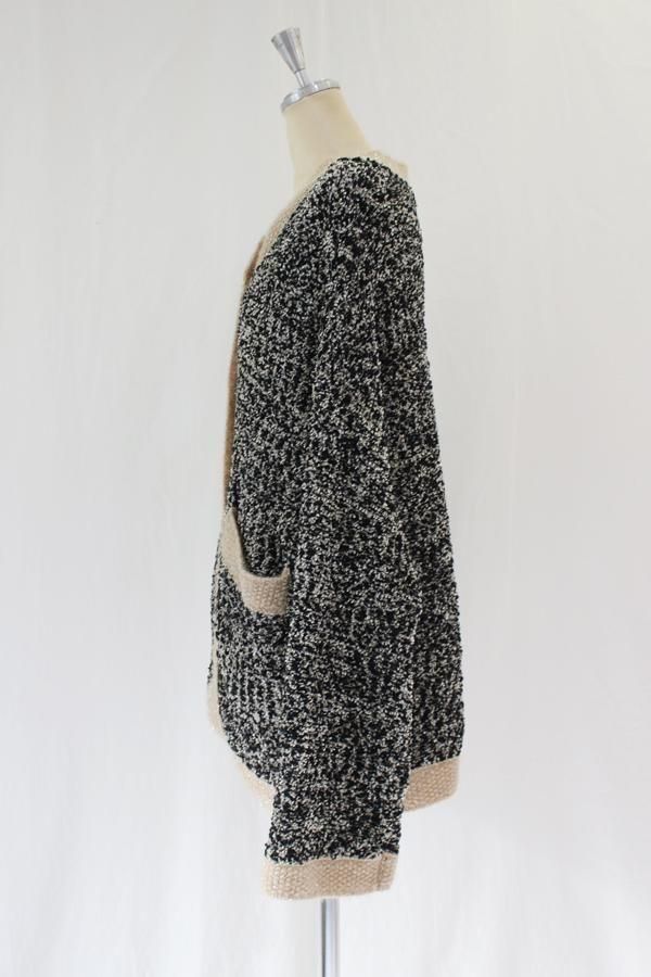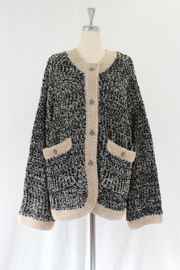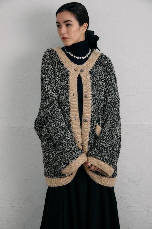 4種類の糸を贅沢に組み合わせた、表情豊かなツイードニットカーディガン。