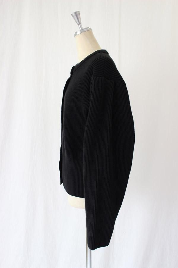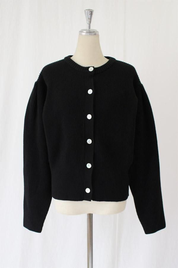 スリーブコンシャスなデザインが特徴のあぜ編みニットカーディガン。