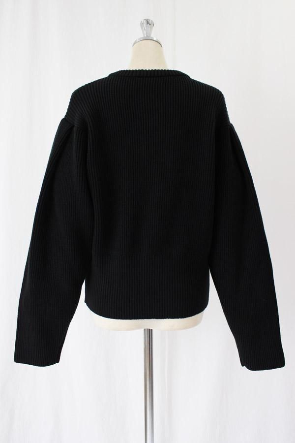 構築的なフォルムが美しいシルエットを生み出し、編み地の変化によってウエストの位置を高く見せる効果でスタイルアップも叶えます。
