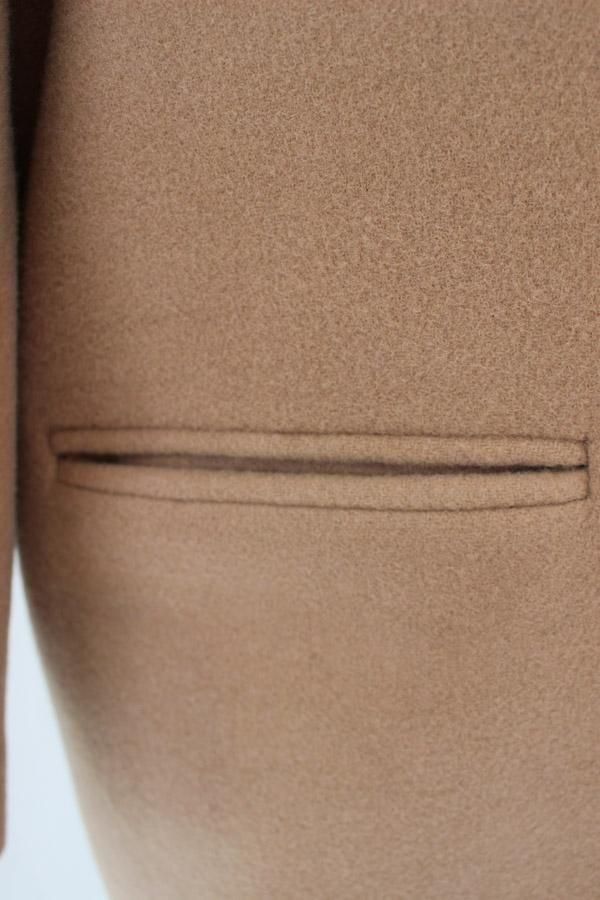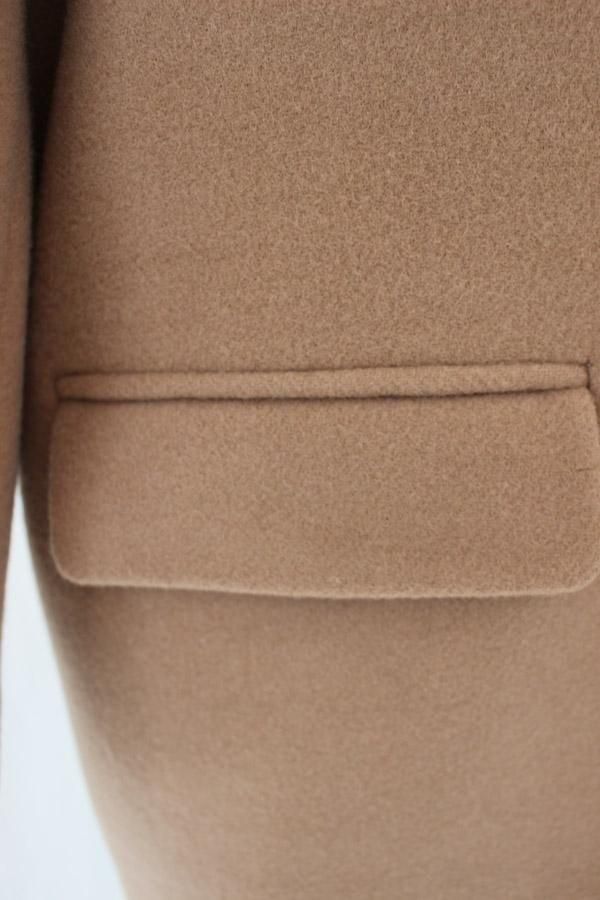 肩パットは入れず厚みのある特殊な芯を施すことで自然に落ちる肩がゴツさを軽減しトレンドに左右されず長く着れるフォルムに仕上げました。