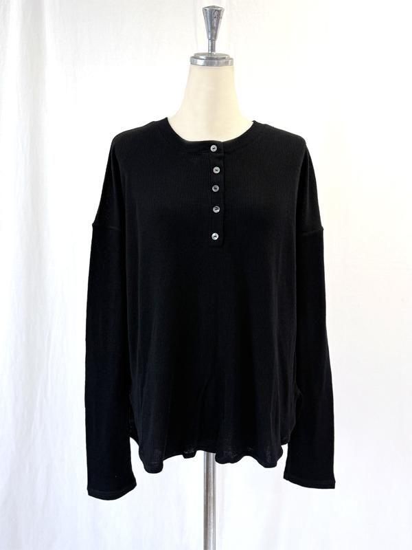 メンズライクなヘンリーネックデザインを、女性が着こなしやすいよう華奢なシルエットに仕上げたロングスリーブTシャツです。